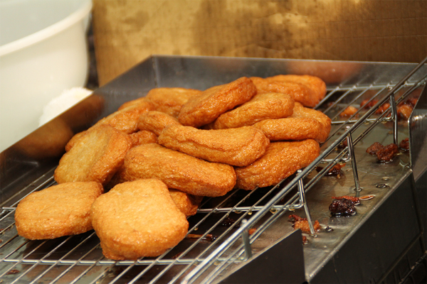 跳ねる油の中で踊る「さつま揚げ」は、ふわっと、きちきち食感。お子様も大好きです。